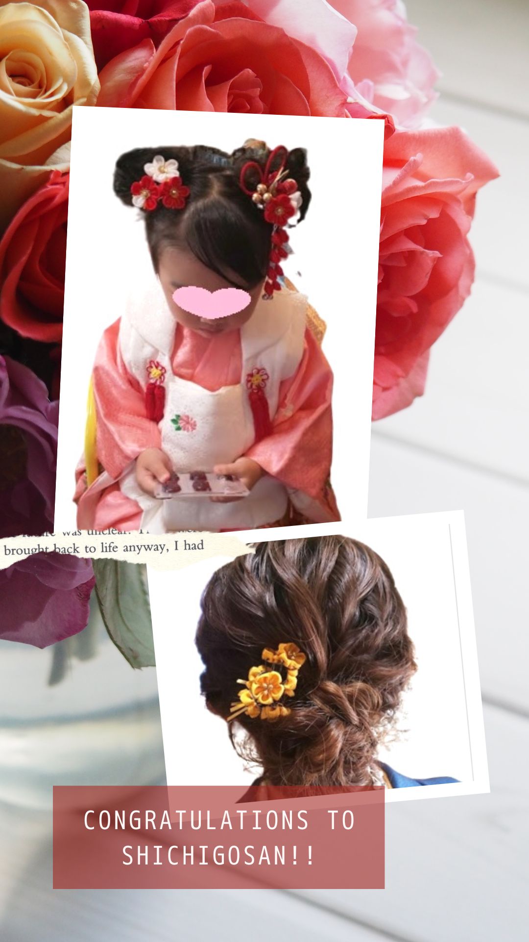 昨日は母娘の着付けとヘアセットをありがとうございました。口頭でなんとなくのイメージをお伝えしただけでしたが、想像以上に可愛らしく仕上げていただき、素敵な七五三詣ができました。苦しさもなく、帰ってくるまで綺麗なまま過ごすことができました。また7歳の時にお願いできたらと思っております。本当にありがとうございました♡!