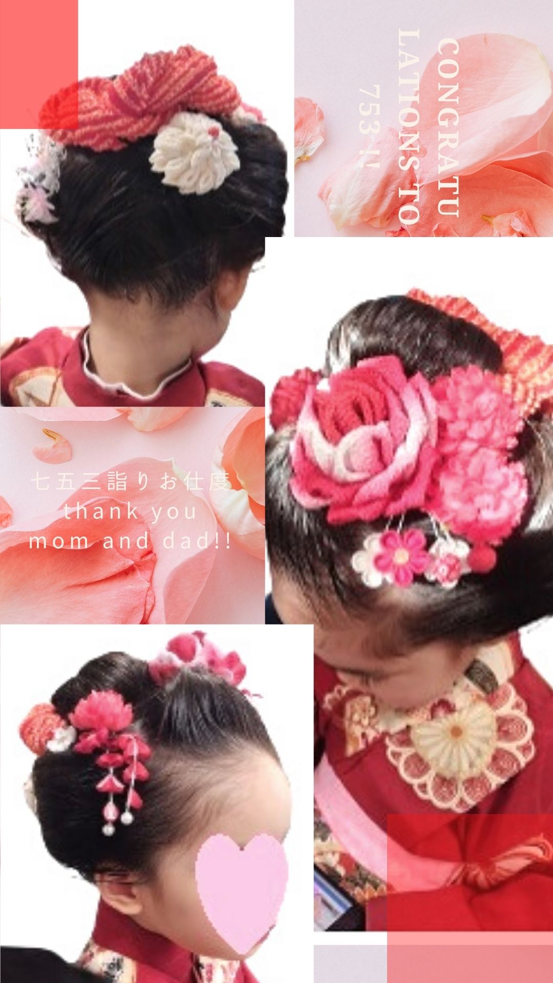 念願叶って娘の七五三での新日本髪ができてとても嬉しく思っています。外出先でも沢山の方に可愛いわねと褒めて頂きました。ありがとうございました。